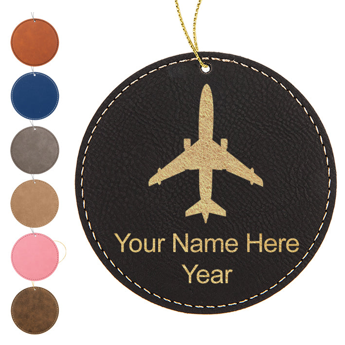 LaserGram Christmas Ornament, Jet Airplane, Personalized Engraving Included (Faux Leather, Round Shape)