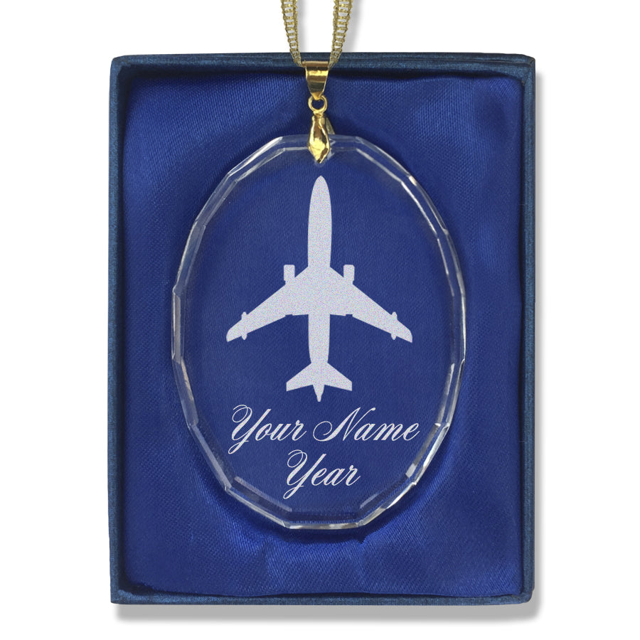 LaserGram Christmas Ornament, Jet Airplane, Personalized Engraving Included (Oval Shape)