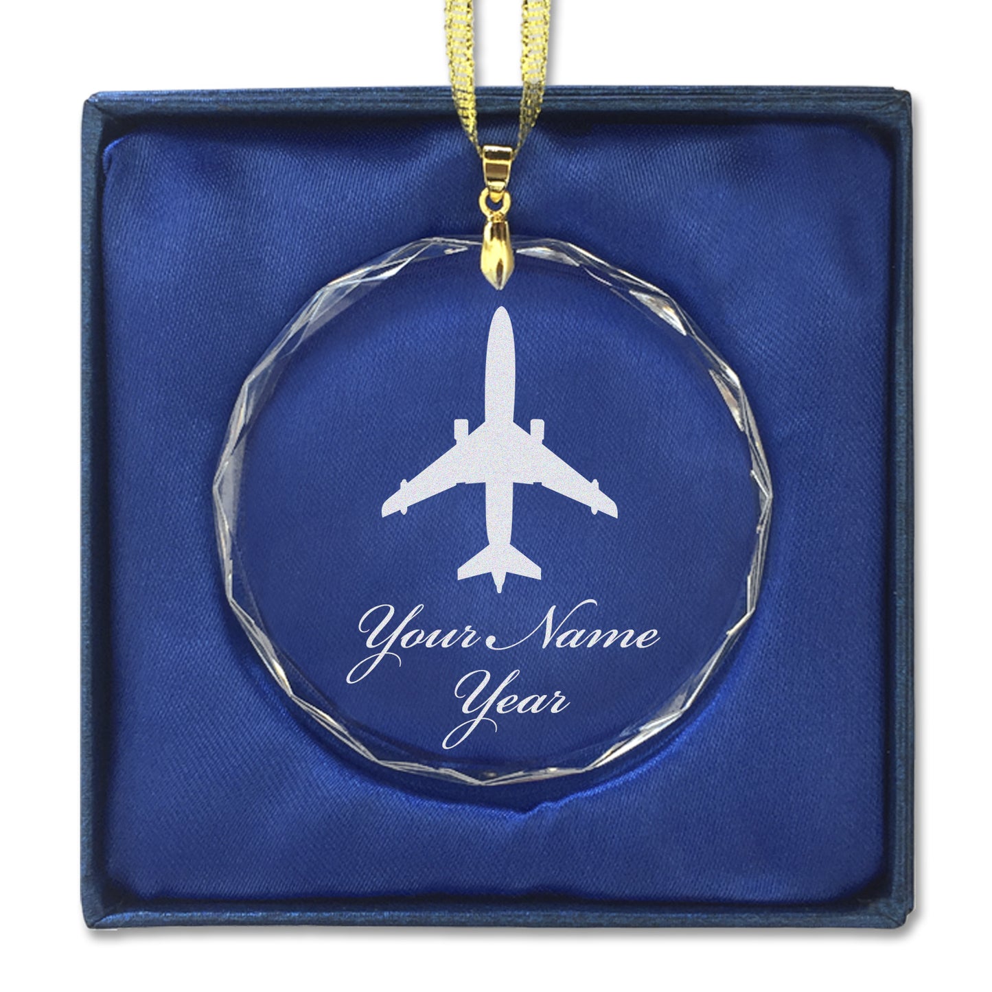 LaserGram Christmas Ornament, Jet Airplane, Personalized Engraving Included (Round Shape)