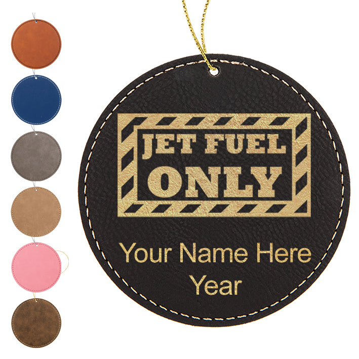 LaserGram Christmas Ornament, Jet Fuel Only, Personalized Engraving Included (Faux Leather, Round Shape)