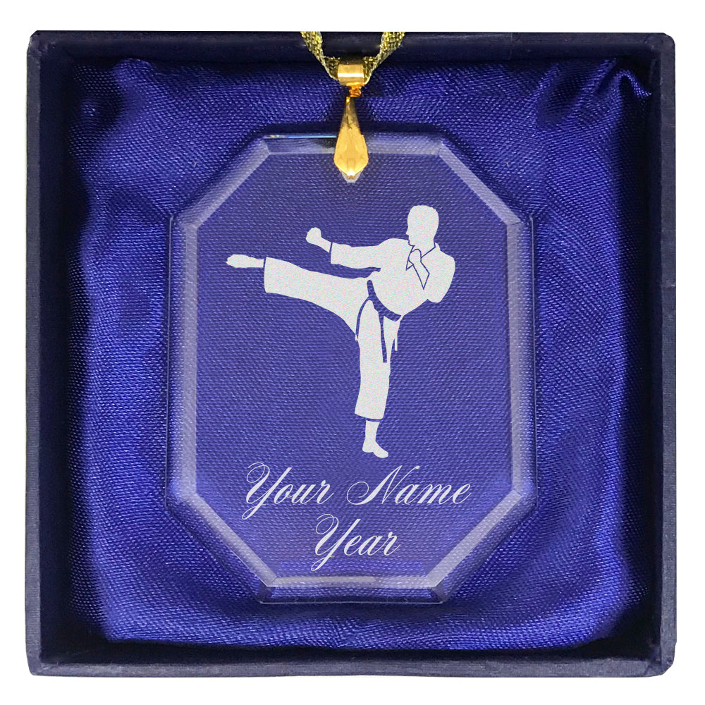 LaserGram Christmas Ornament, Karate Man, Personalized Engraving Included (Rectangle Shape)