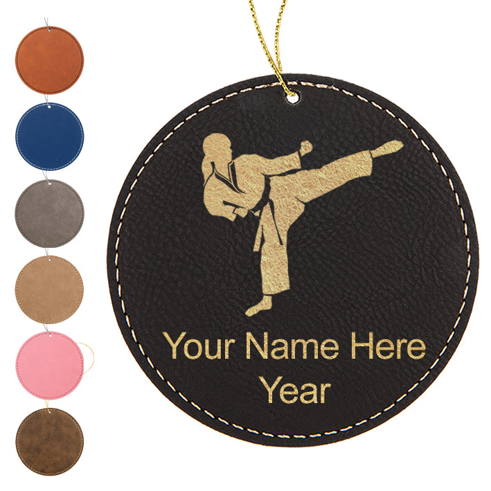 LaserGram Christmas Ornament, Karate Woman, Personalized Engraving Included (Faux Leather, Round Shape)