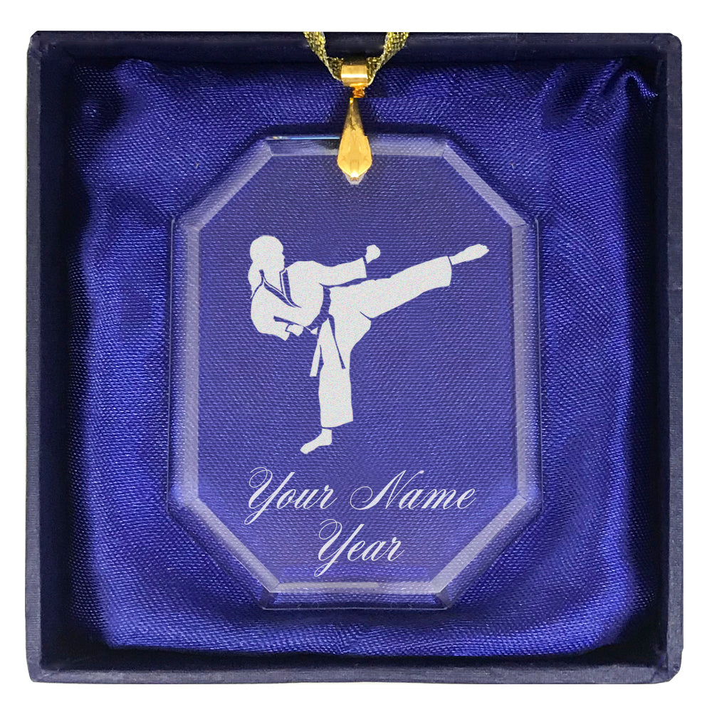 LaserGram Christmas Ornament, Karate Woman, Personalized Engraving Included (Rectangle Shape)