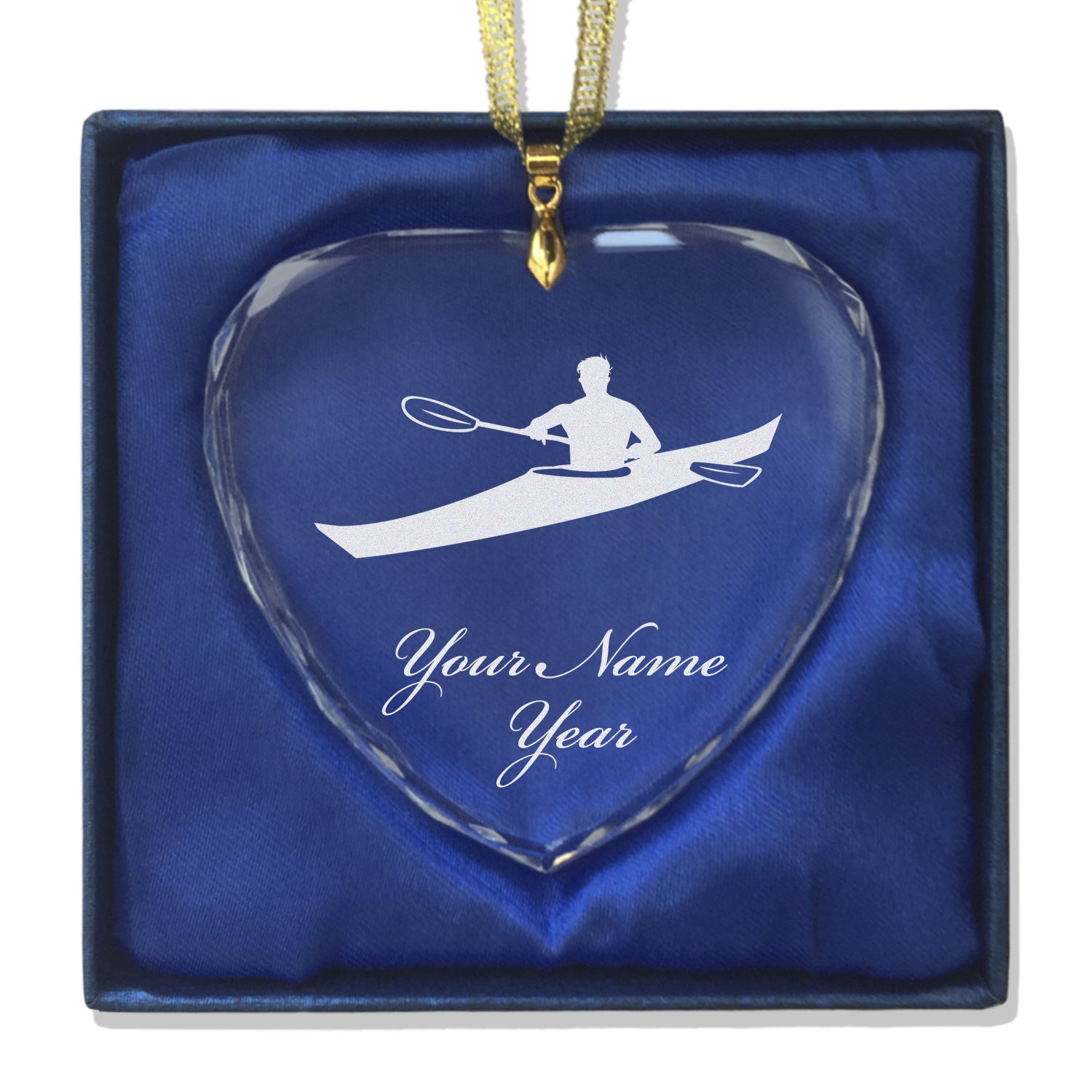 LaserGram Christmas Ornament, Kayak Man, Personalized Engraving Included (Heart Shape)