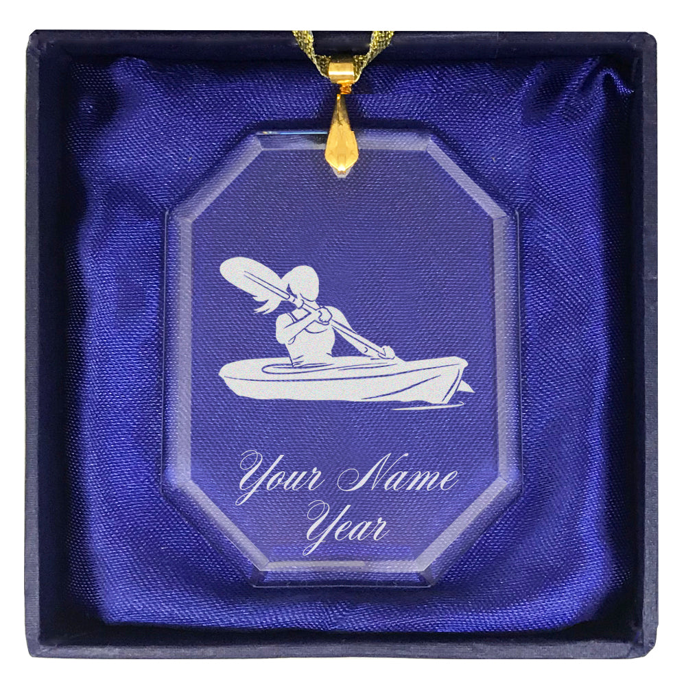 LaserGram Christmas Ornament, Kayak Woman, Personalized Engraving Included (Rectangle Shape)