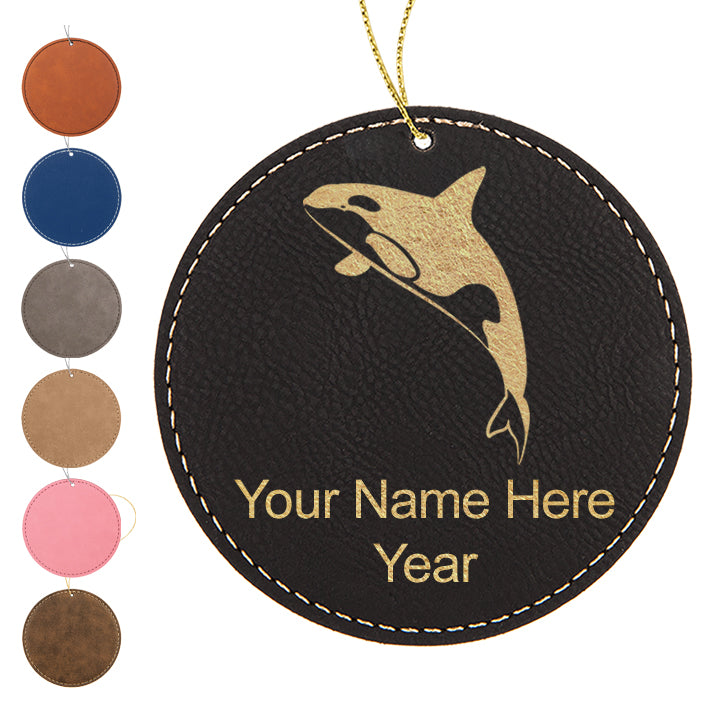 LaserGram Christmas Ornament, Killer Whale, Personalized Engraving Included (Faux Leather, Round Shape)