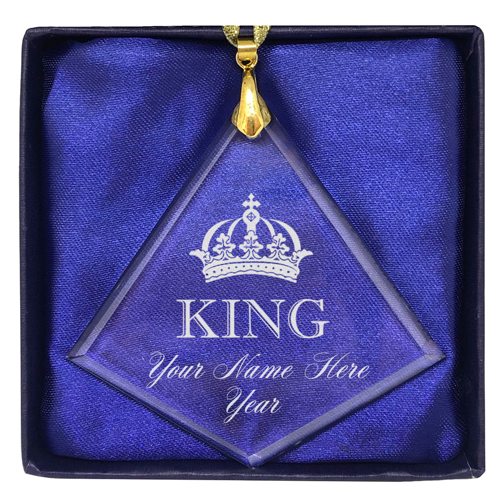 LaserGram Christmas Ornament, King Crown, Personalized Engraving Included (Diamond Shape)