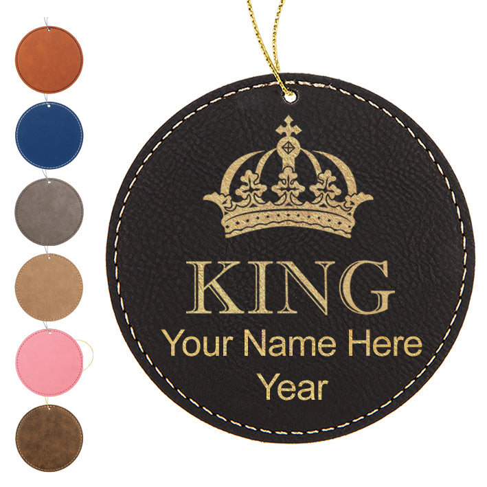 LaserGram Christmas Ornament, King Crown, Personalized Engraving Included (Faux Leather, Round Shape)