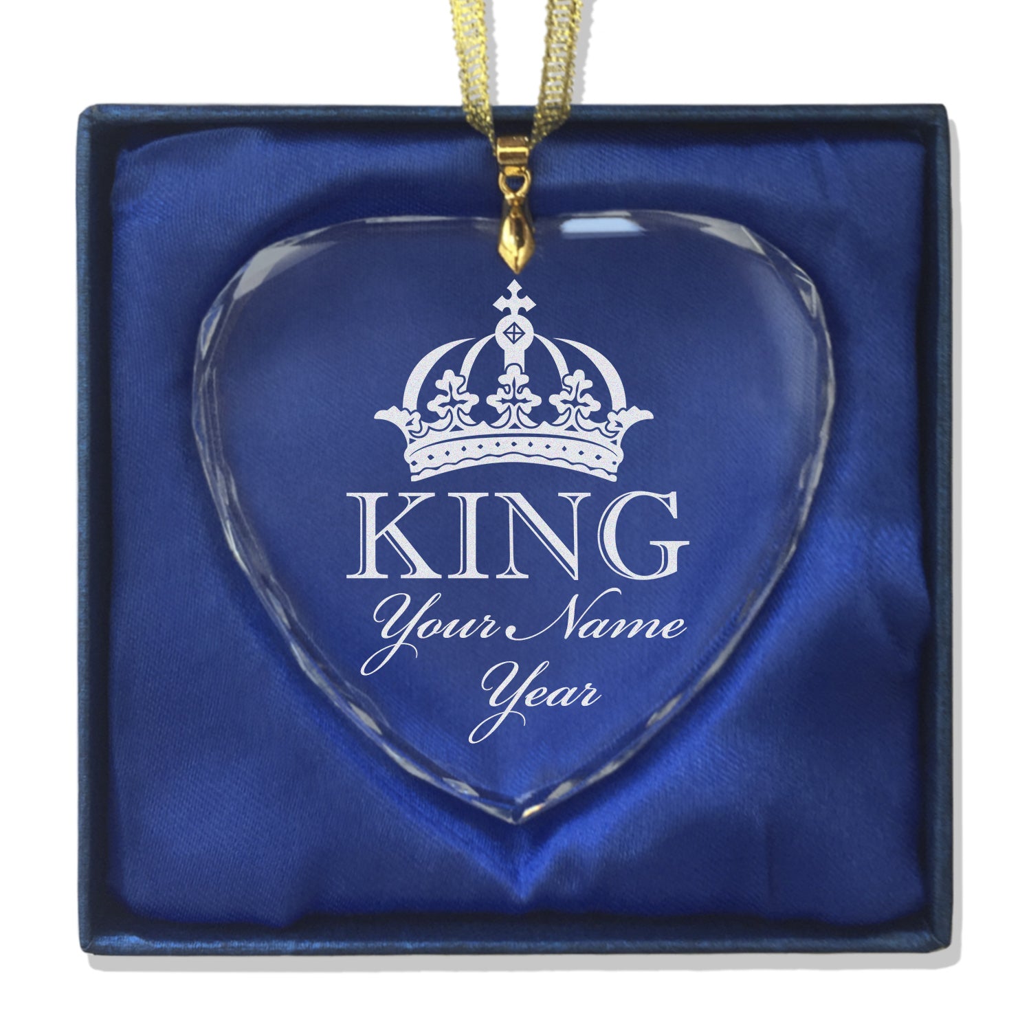 LaserGram Christmas Ornament, King Crown, Personalized Engraving Included (Heart Shape)
