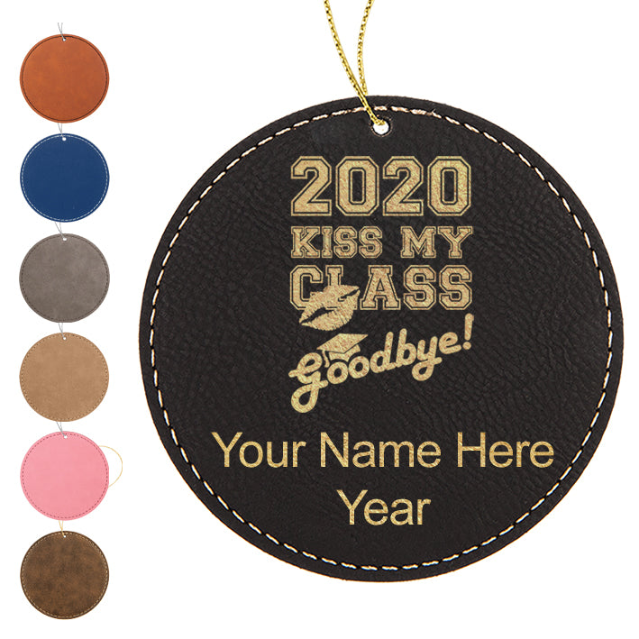 LaserGram Christmas Ornament, Kiss My Class Goodbye 2020, Personalized Engraving Included (Faux Leather, Round Shape)