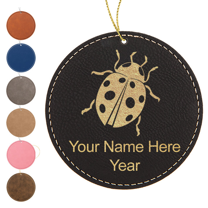 LaserGram Christmas Ornament, Ladybug, Personalized Engraving Included (Faux Leather, Round Shape)