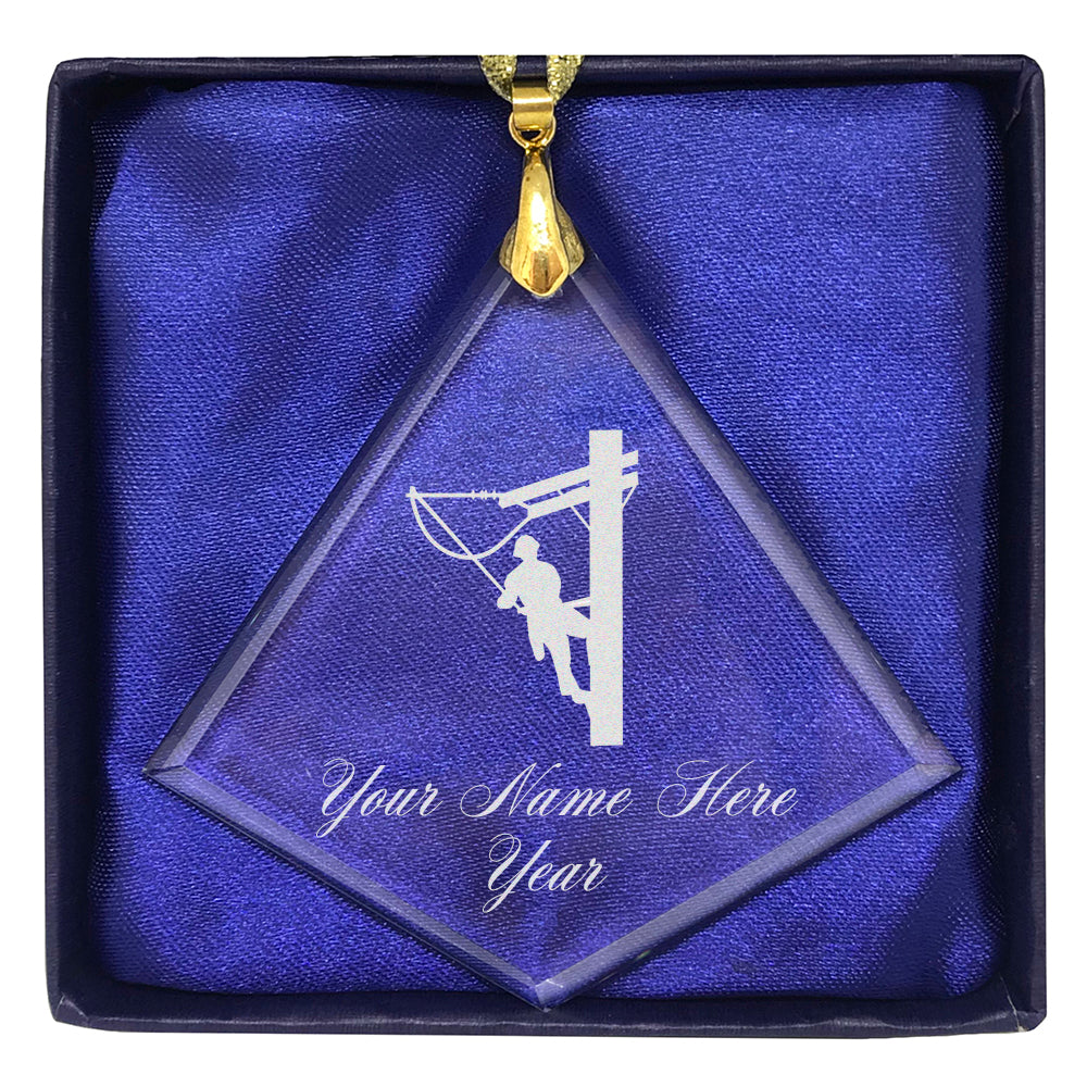 LaserGram Christmas Ornament, Lineman, Personalized Engraving Included (Diamond Shape)