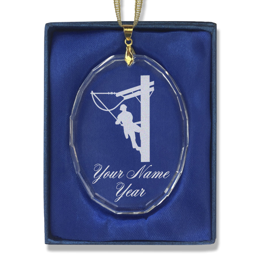 LaserGram Christmas Ornament, Lineman, Personalized Engraving Included (Oval Shape)