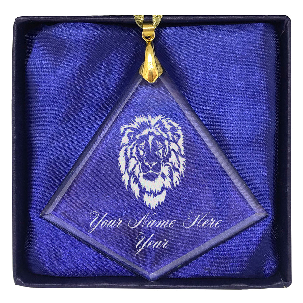 LaserGram Christmas Ornament, Lion Head, Personalized Engraving Included (Diamond Shape)