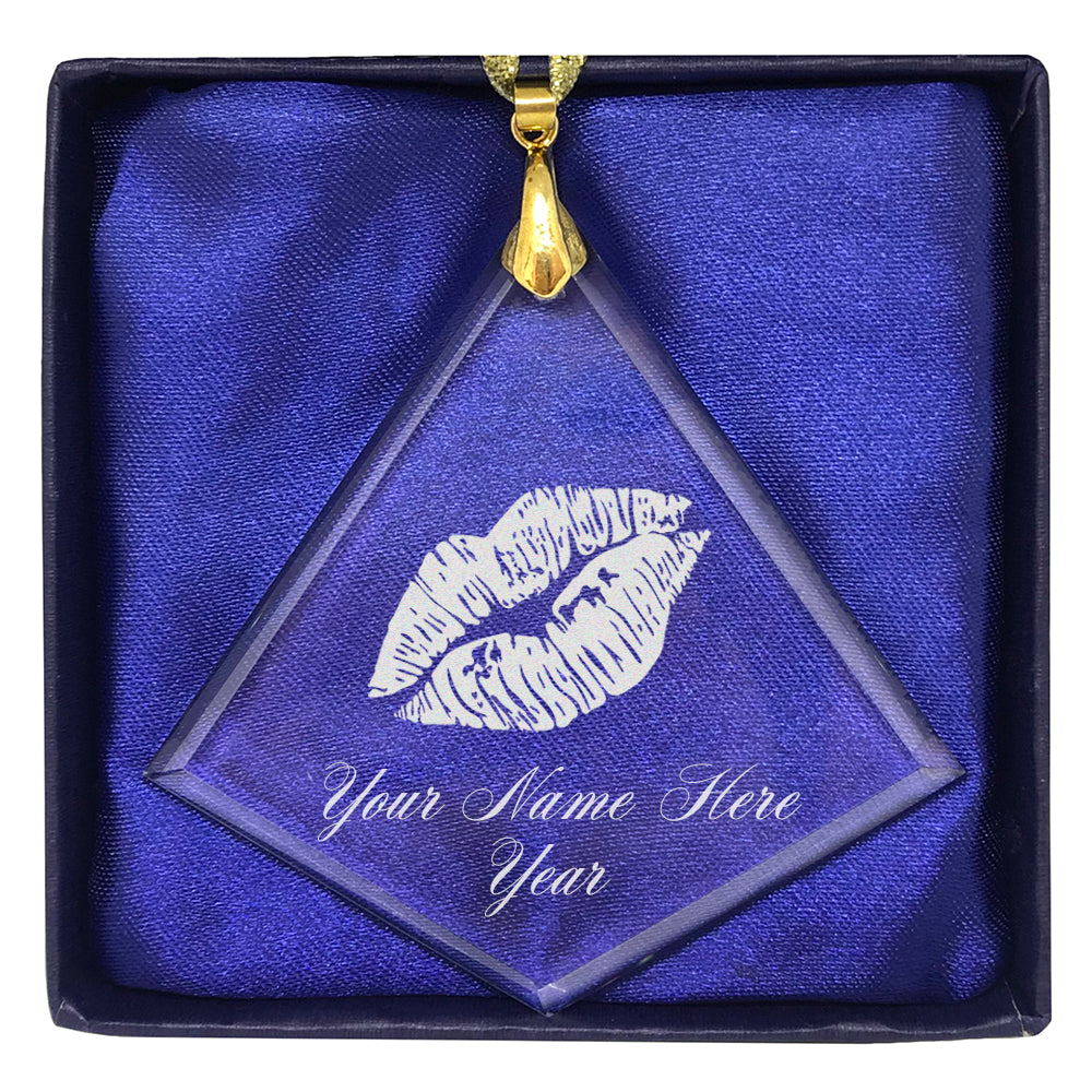 LaserGram Christmas Ornament, Lipstick Kiss, Personalized Engraving Included (Diamond Shape)