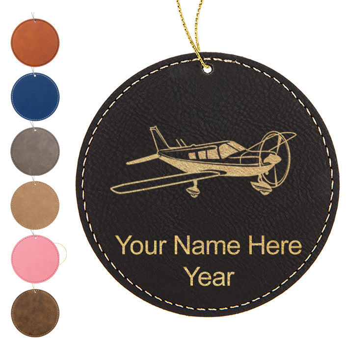 LaserGram Christmas Ornament, Low Wing Airplane, Personalized Engraving Included (Faux Leather, Round Shape)