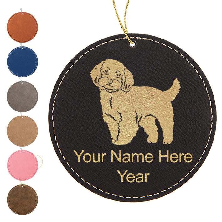 LaserGram Christmas Ornament, Maltese Dog, Personalized Engraving Included (Faux Leather, Round Shape)
