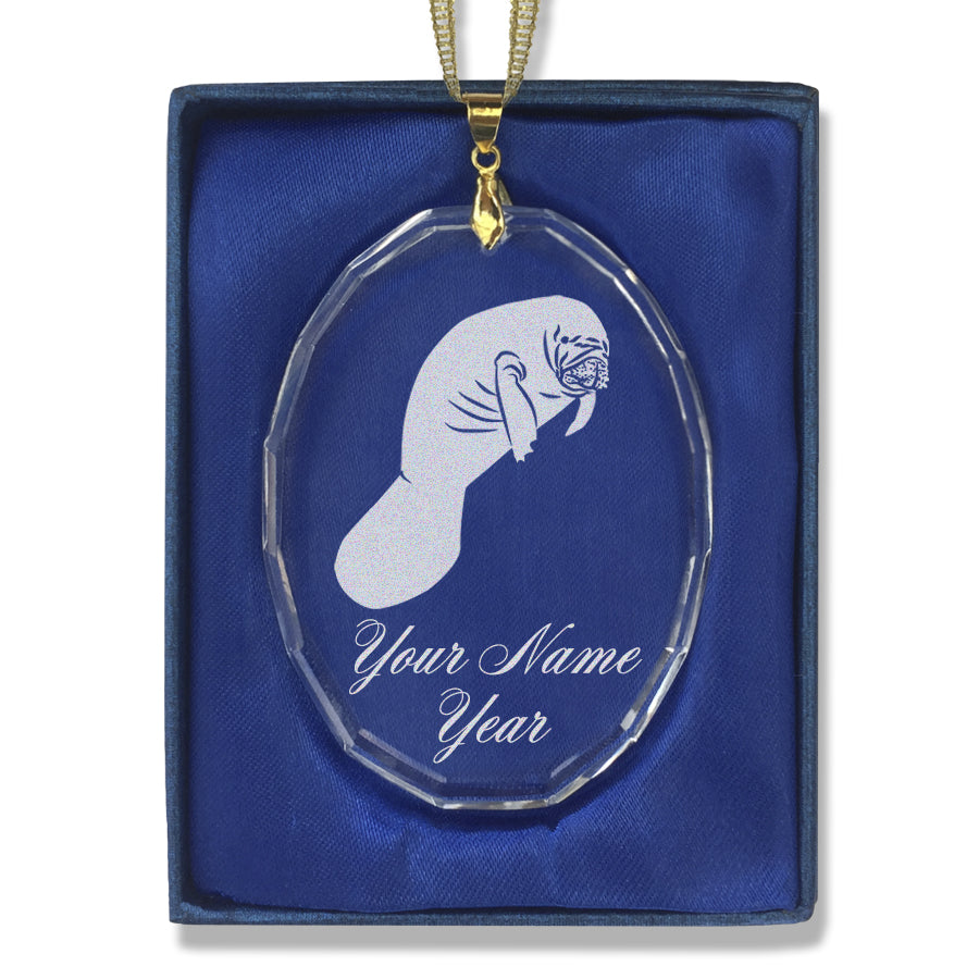 LaserGram Christmas Ornament, Manatee, Personalized Engraving Included (Oval Shape)