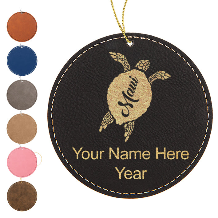 LaserGram Christmas Ornament, Maui Sea Turtle, Personalized Engraving Included (Faux Leather, Round Shape)