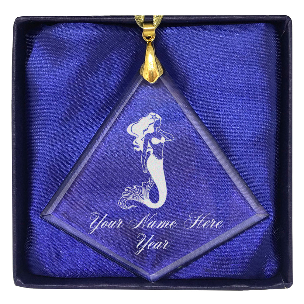 LaserGram Christmas Ornament, Mermaid, Personalized Engraving Included (Diamond Shape)