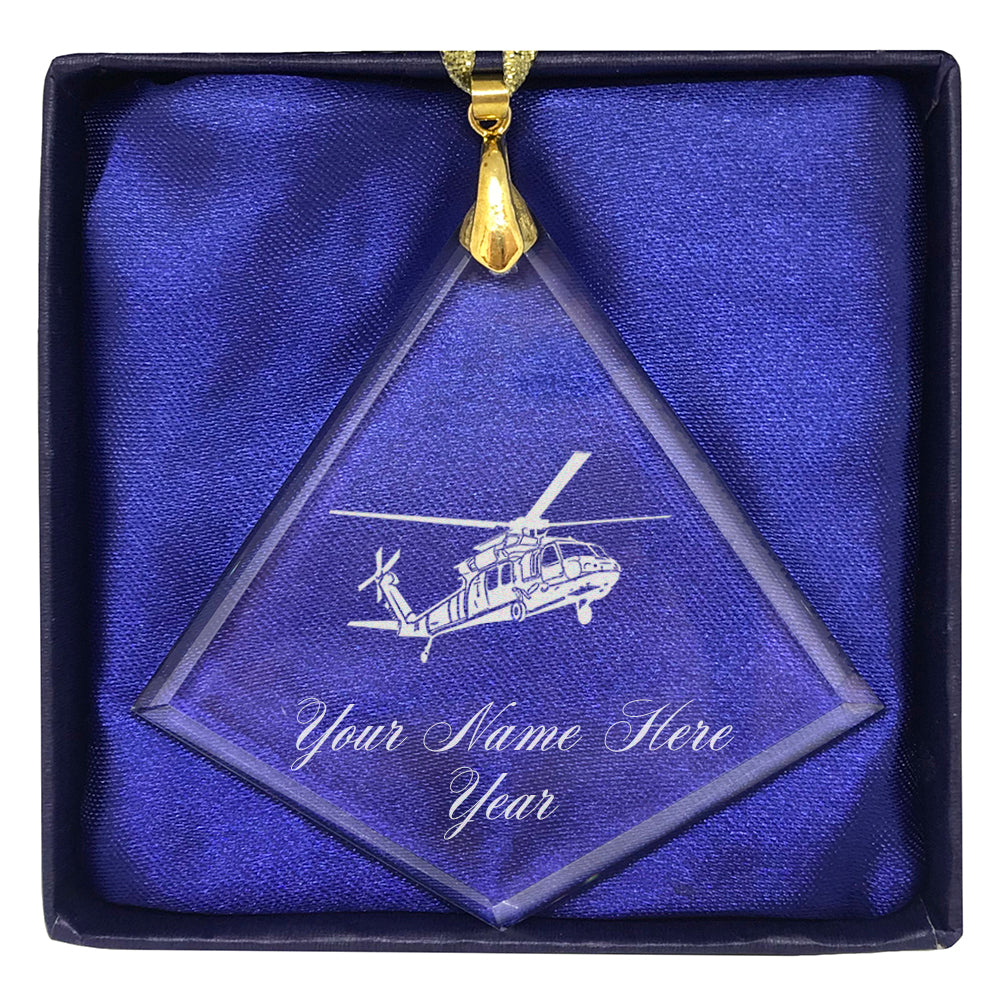 LaserGram Christmas Ornament, Military Helicopter 1, Personalized Engraving Included (Diamond Shape)