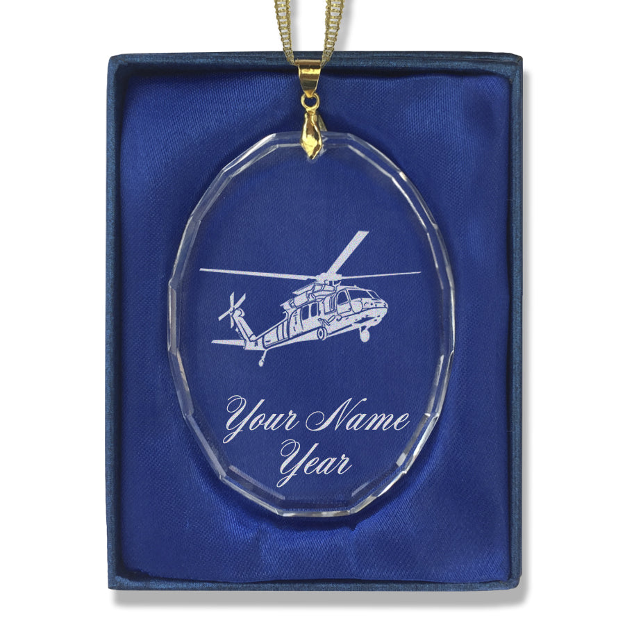 LaserGram Christmas Ornament, Military Helicopter 1, Personalized Engraving Included (Oval Shape)