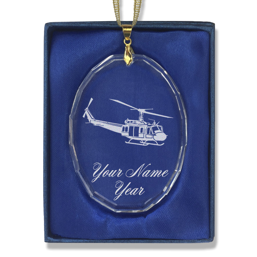 LaserGram Christmas Ornament, Military Helicopter 2, Personalized Engraving Included (Oval Shape)