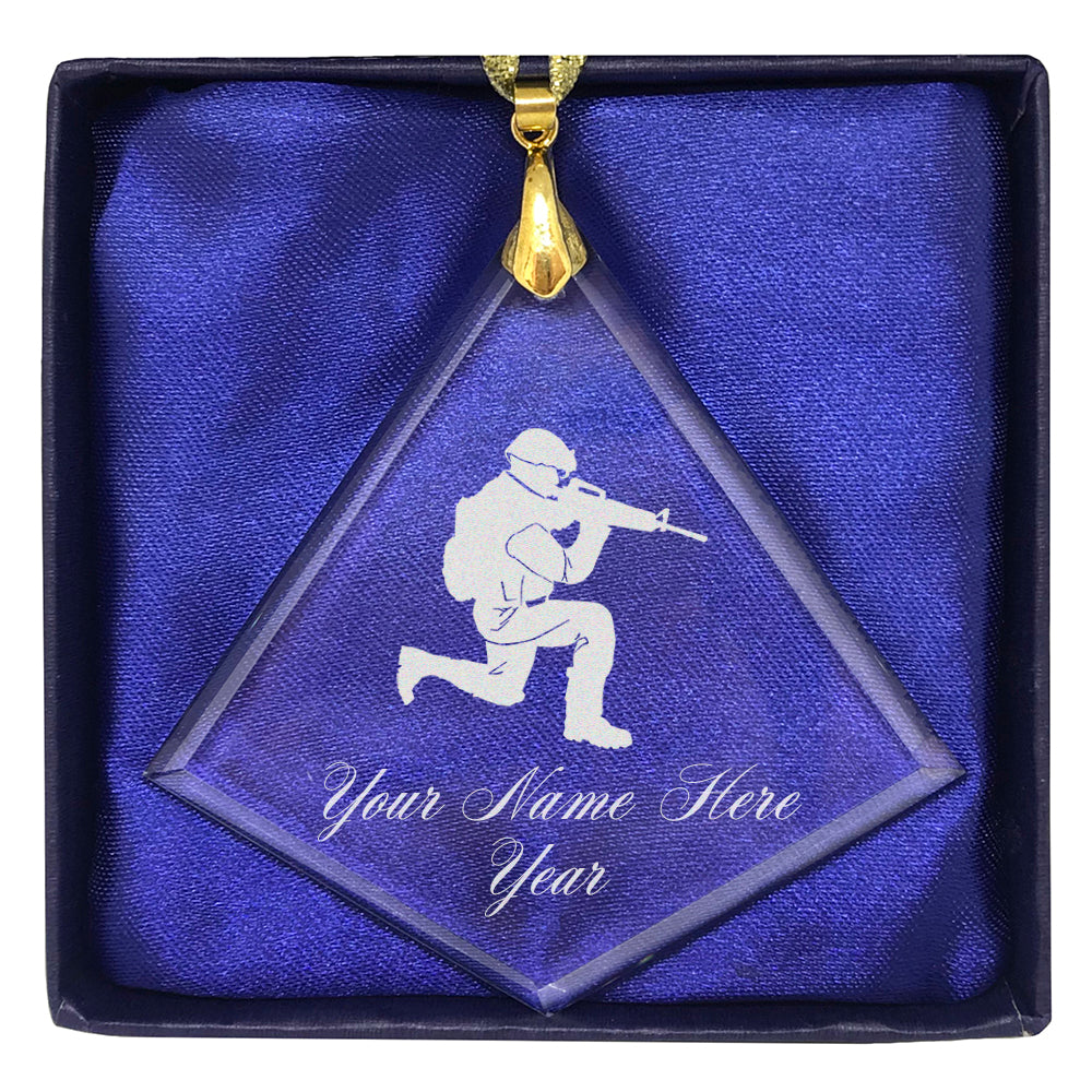 LaserGram Christmas Ornament, Military Soldier, Personalized Engraving Included (Diamond Shape)