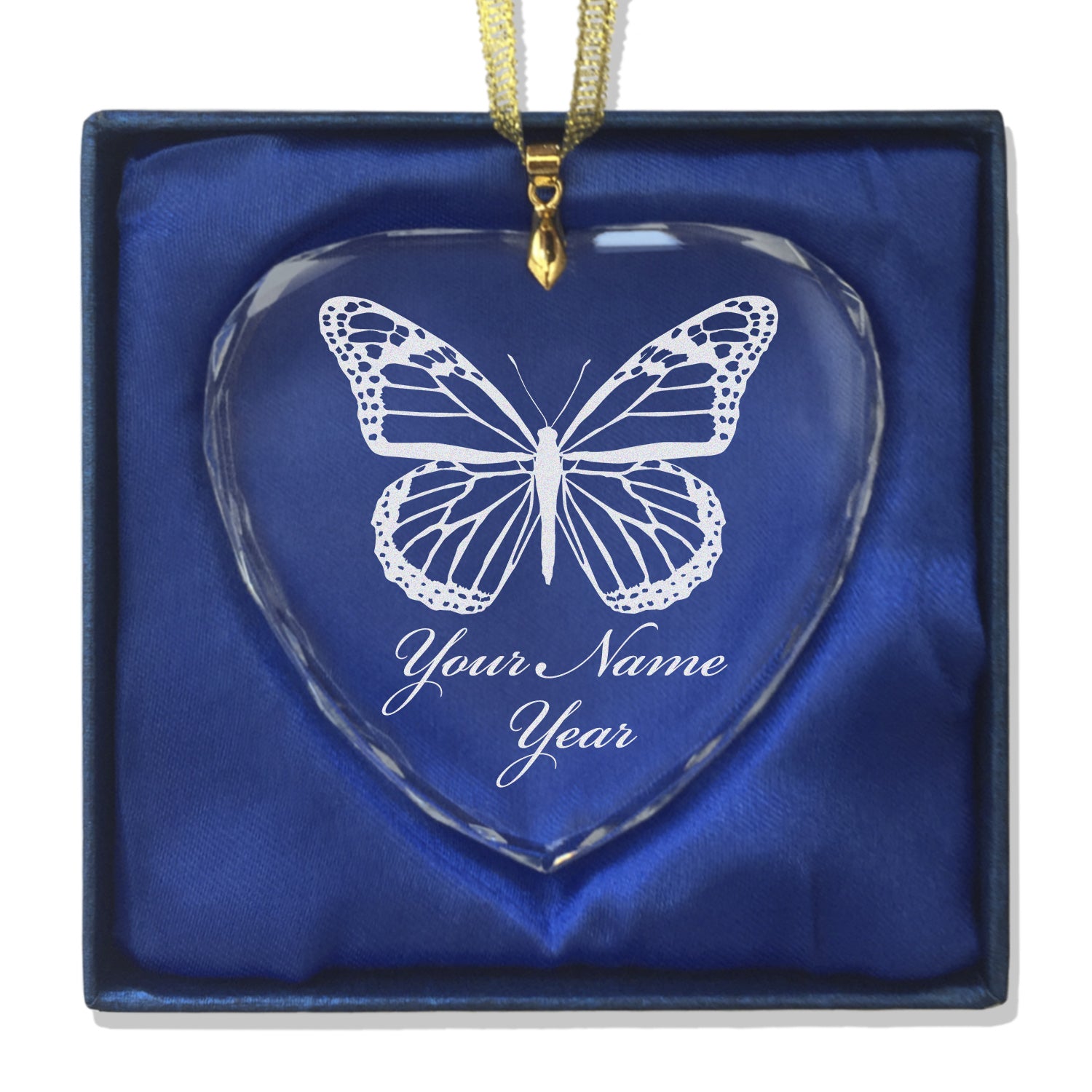 LaserGram Christmas Ornament, Monarch Butterfly, Personalized Engraving Included (Heart Shape)