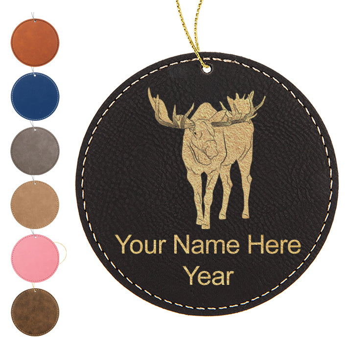 LaserGram Christmas Ornament, Moose, Personalized Engraving Included (Faux Leather, Round Shape)