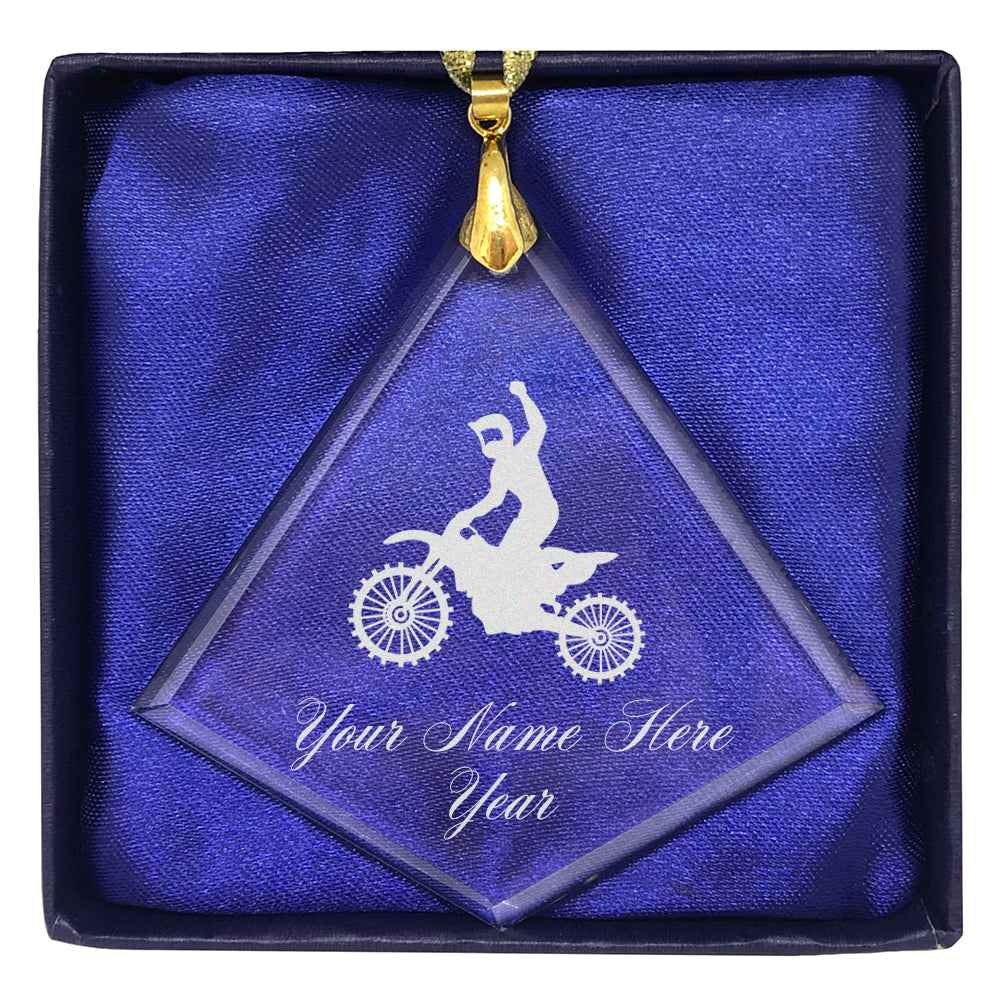 LaserGram Christmas Ornament, Motocross, Personalized Engraving Included (Diamond Shape)