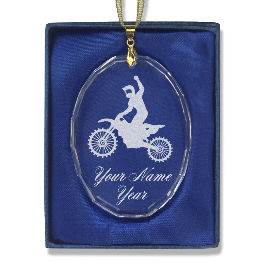 LaserGram Christmas Ornament, Motocross, Personalized Engraving Included (Oval Shape)