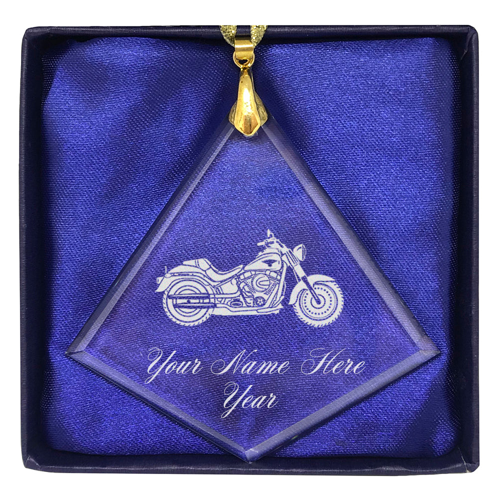 LaserGram Christmas Ornament, Motorcycle, Personalized Engraving Included (Diamond Shape)