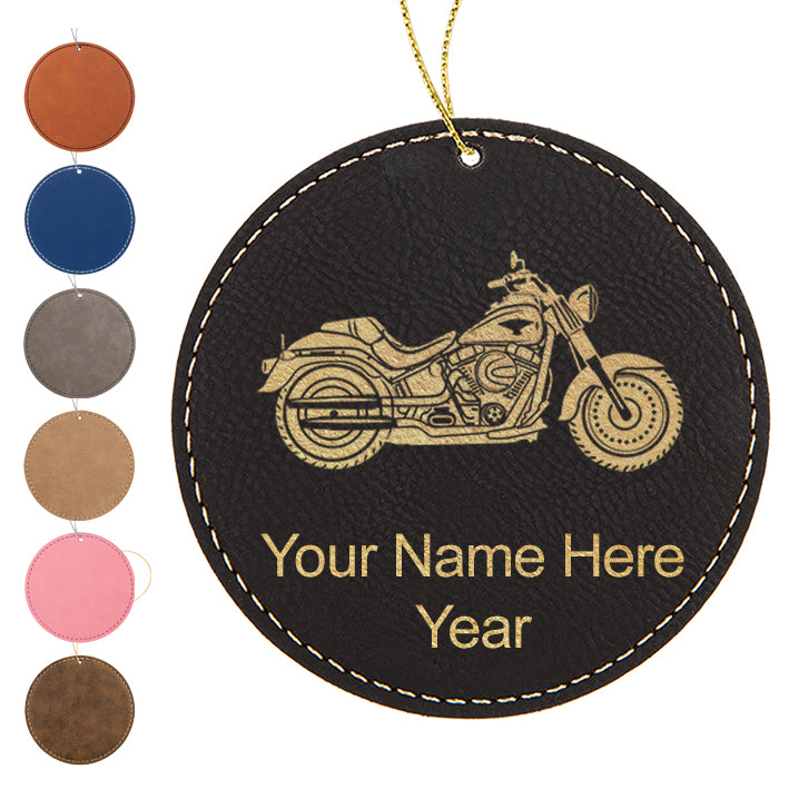 LaserGram Christmas Ornament, Motorcycle, Personalized Engraving Included (Faux Leather, Round Shape)