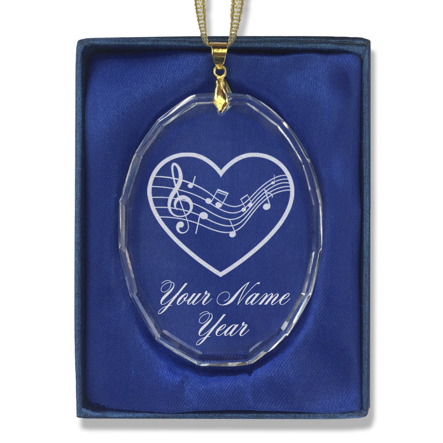 LaserGram Christmas Ornament, Music Staff Heart, Personalized Engraving Included (Oval Shape)