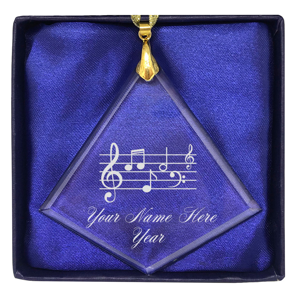 LaserGram Christmas Ornament, Music Staff, Personalized Engraving Included (Diamond Shape)
