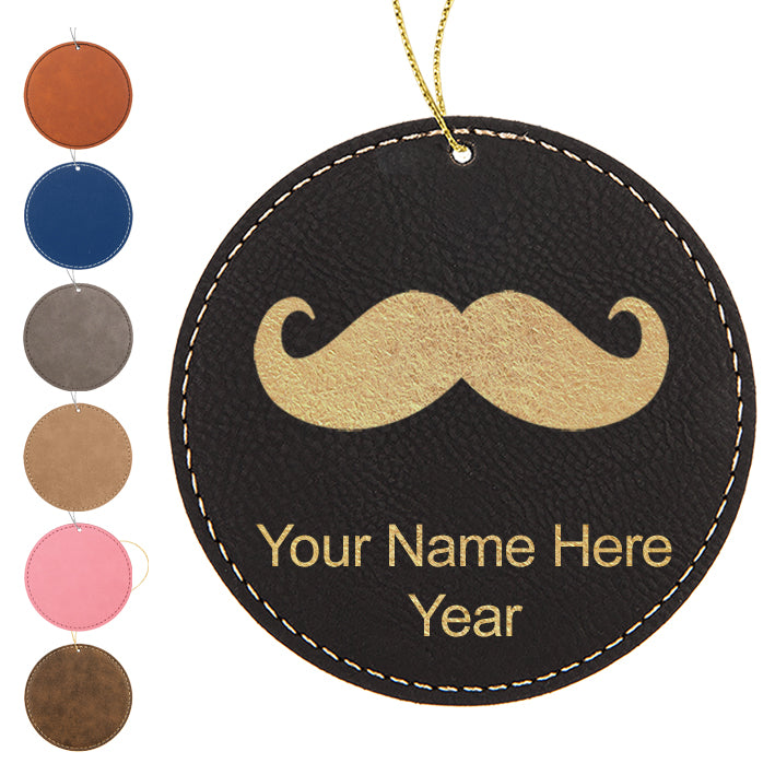 LaserGram Christmas Ornament, Mustache, Personalized Engraving Included (Faux Leather, Round Shape)