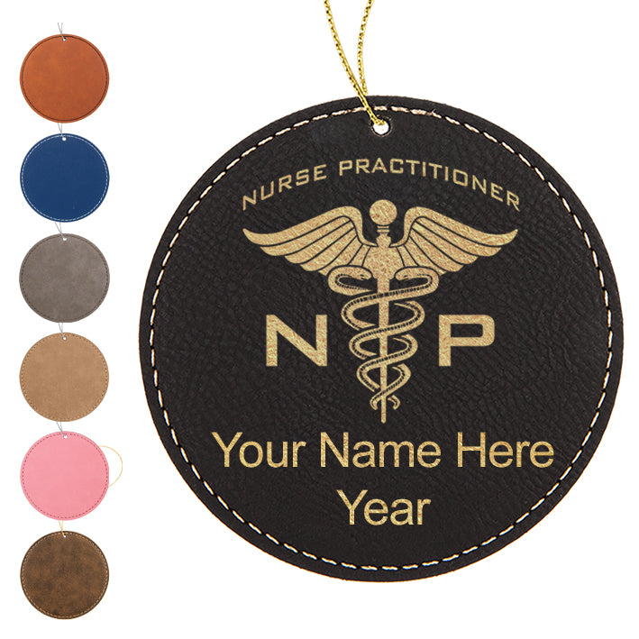 LaserGram Christmas Ornament, NP Nurse Practitioner, Personalized Engraving Included (Faux Leather, Round Shape)