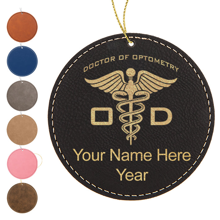 LaserGram Christmas Ornament, OD Doctor of Optometry, Personalized Engraving Included (Faux Leather, Round Shape)