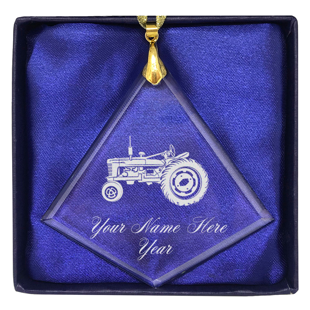 LaserGram Christmas Ornament, Old Farm Tractor, Personalized Engraving Included (Diamond Shape)