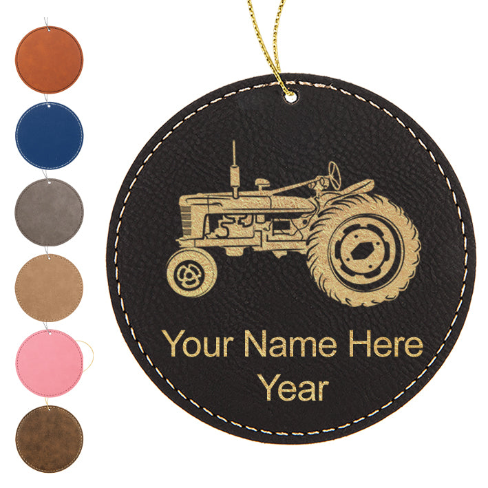 LaserGram Christmas Ornament, Old Farm Tractor, Personalized Engraving Included (Faux Leather, Round Shape)