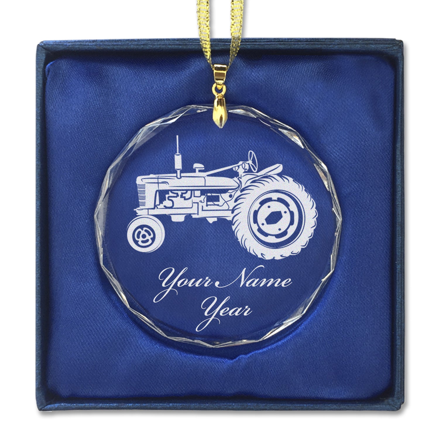LaserGram Christmas Ornament, Old Farm Tractor, Personalized Engraving Included (Round Shape)
