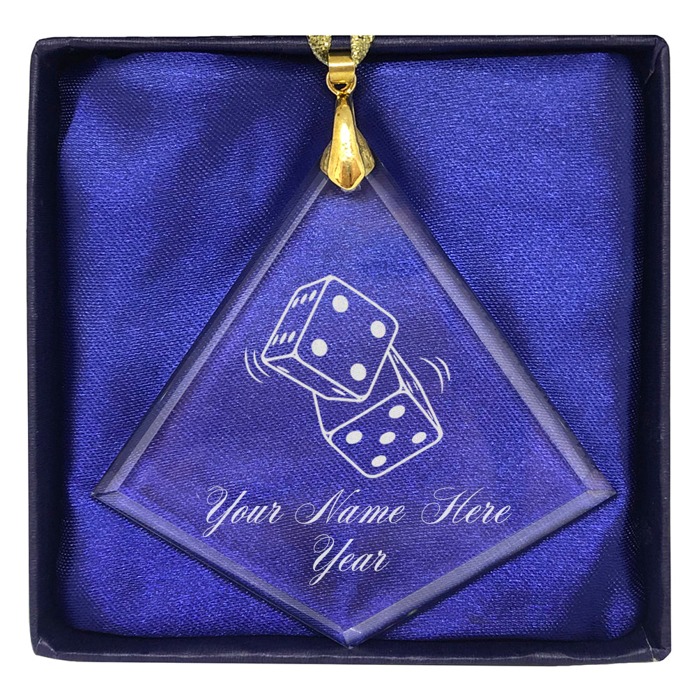 LaserGram Christmas Ornament, Pair of Dice, Personalized Engraving Included (Diamond Shape)