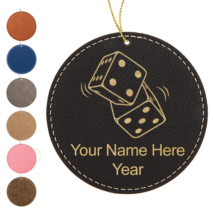 LaserGram Christmas Ornament, Pair of Dice, Personalized Engraving Included (Faux Leather, Round Shape)