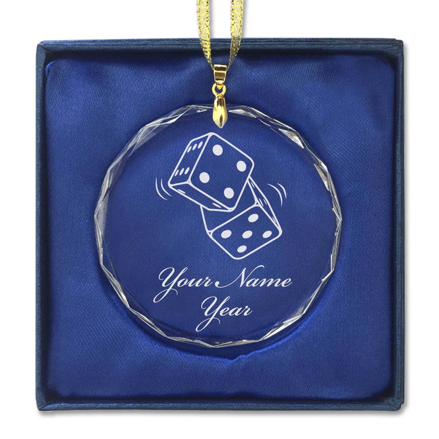 LaserGram Christmas Ornament, Pair of Dice, Personalized Engraving Included (Round Shape)