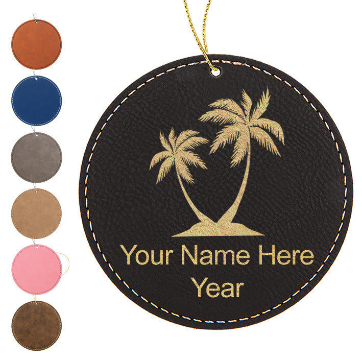 LaserGram Christmas Ornament, Palm Trees, Personalized Engraving Included (Faux Leather, Round Shape)