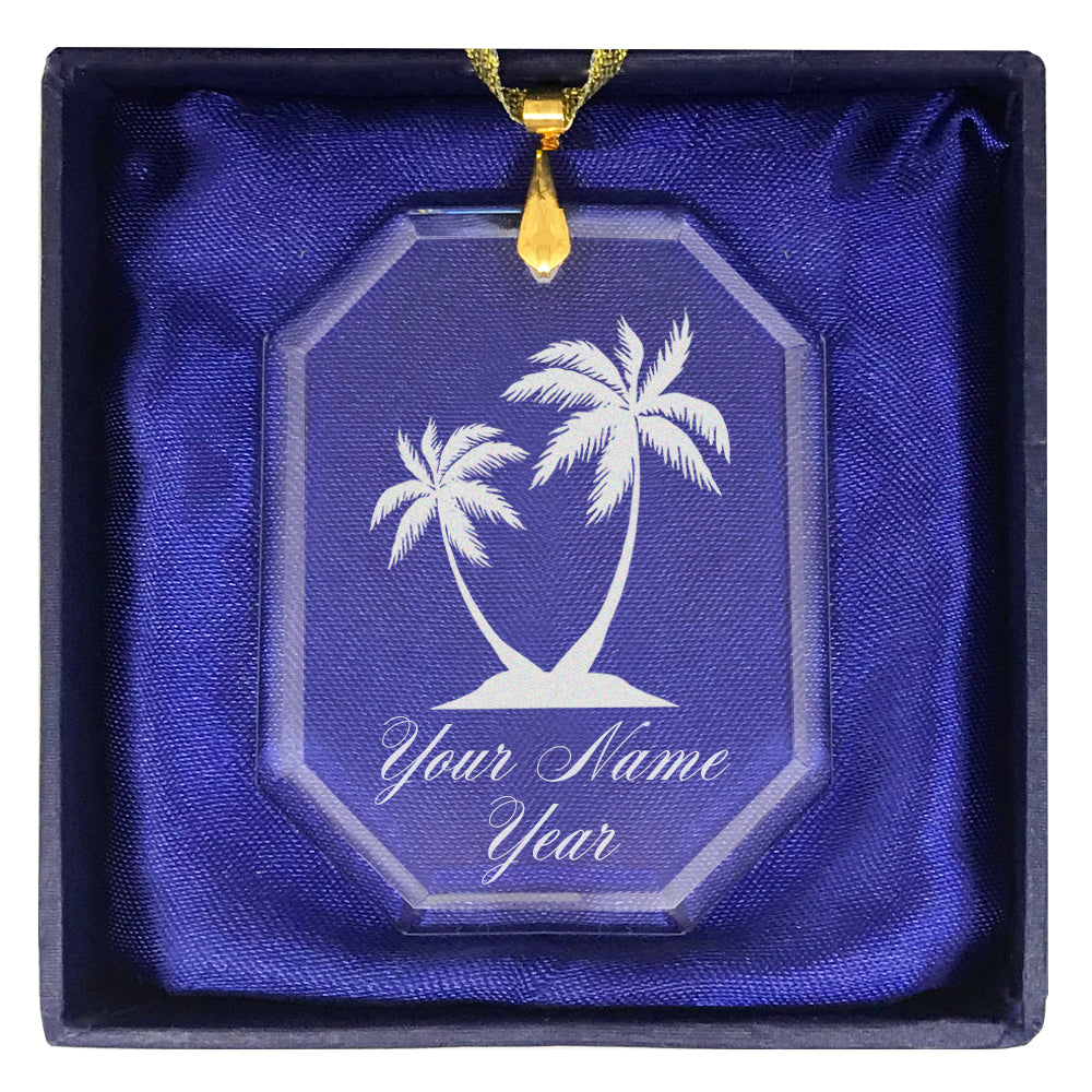 LaserGram Christmas Ornament, Palm Trees, Personalized Engraving Included (Rectangle Shape)