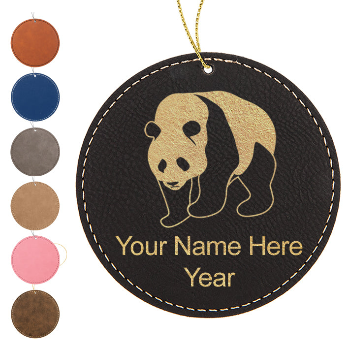 LaserGram Christmas Ornament, Panda Bear, Personalized Engraving Included (Faux Leather, Round Shape)