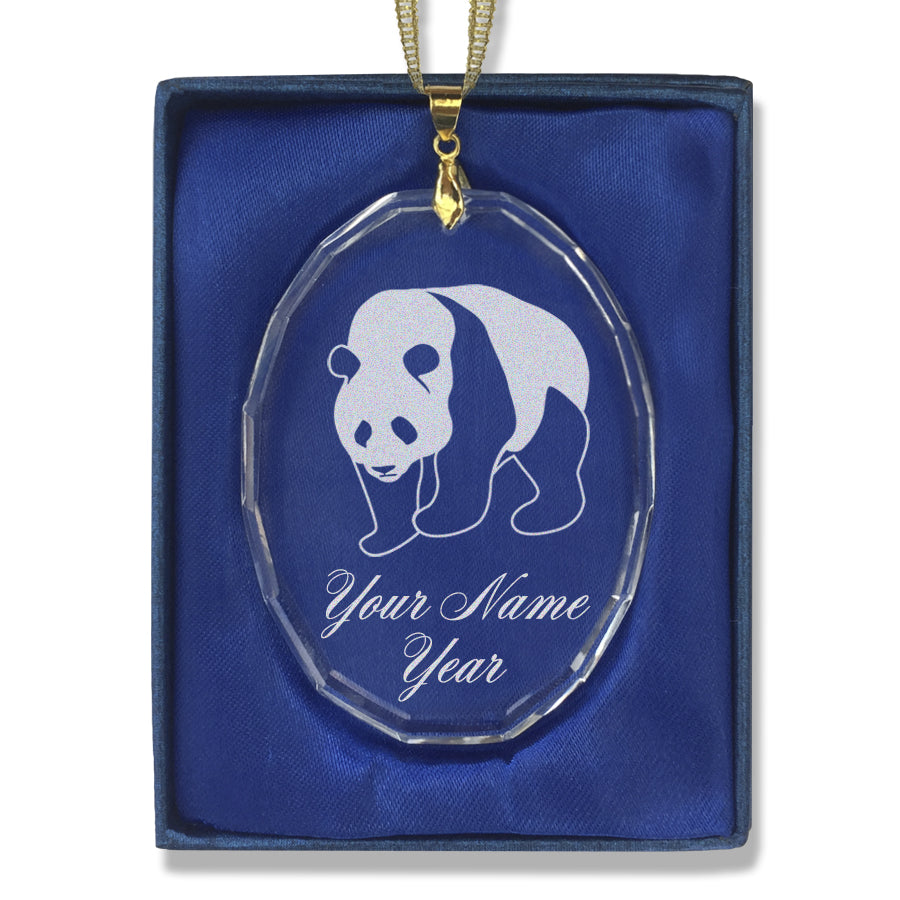 LaserGram Christmas Ornament, Panda Bear, Personalized Engraving Included (Oval Shape)