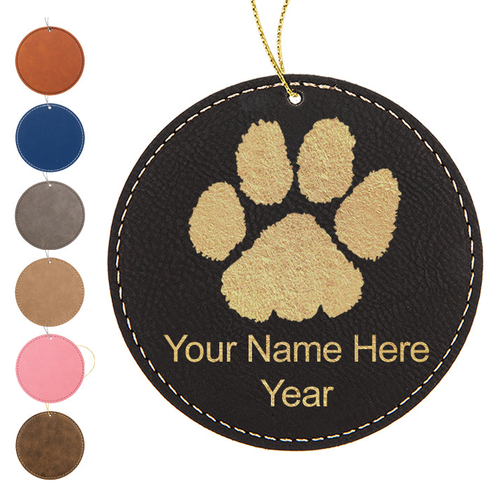 LaserGram Christmas Ornament, Paw Print, Personalized Engraving Included (Faux Leather, Round Shape)